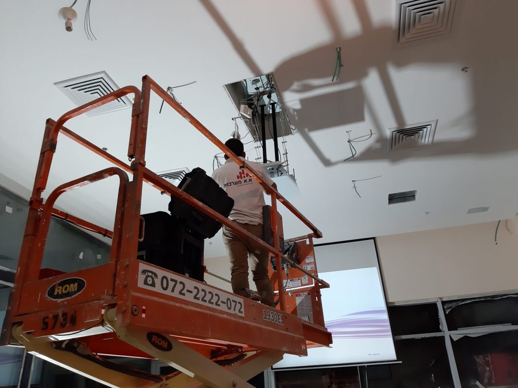 התקנת מערכת הקרנה הכוללת מעליות למקרן מולטימידה וסאונד