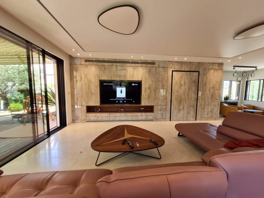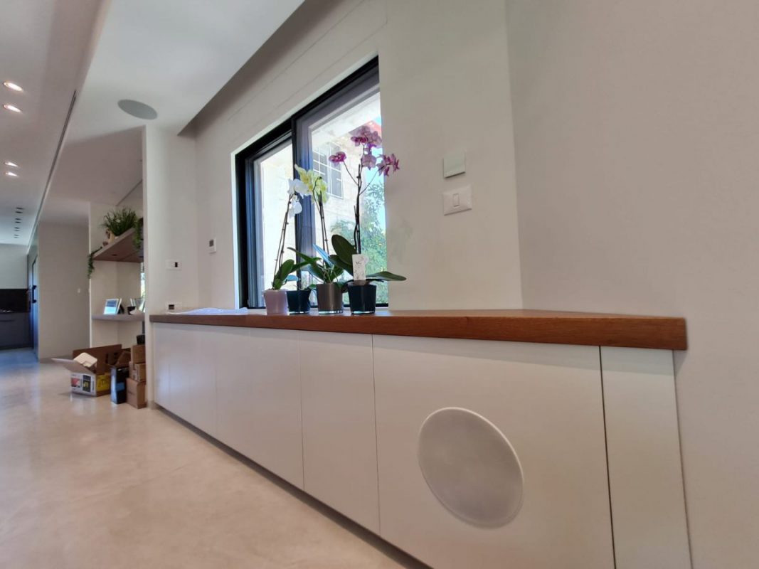 התקנת מערכת סאונד וקולנוע ביתי לסלון מטבח ולחצר