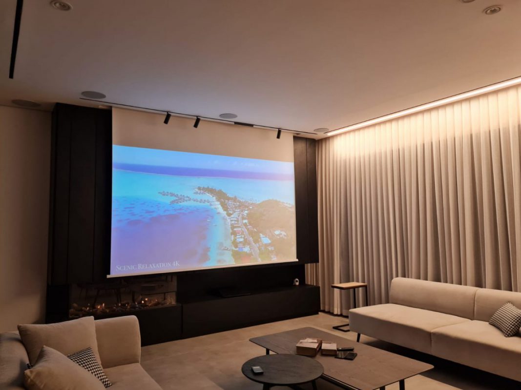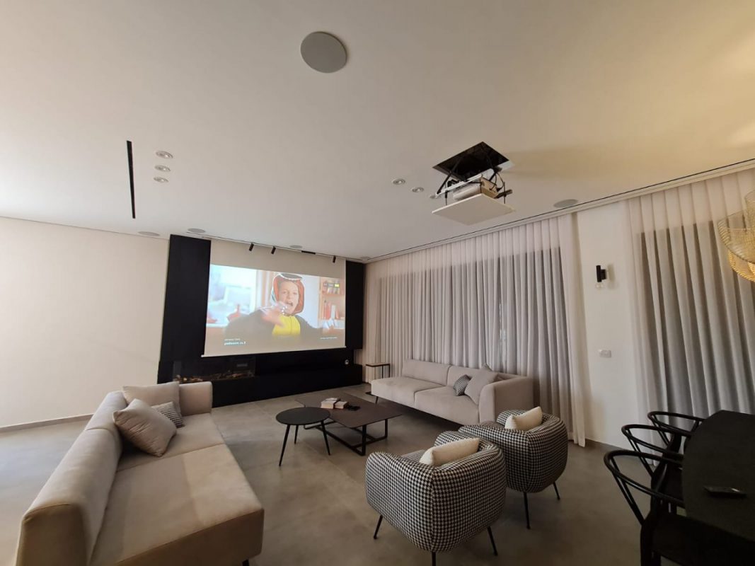 גם בבית הזה פנו אלינו זוג חמודים שהתחילו לבנות את בית החלומות שלהם וגם הם תמיד חלמו שתהיה להם בבית מערכת קולנוע איכותית שתאפשר להם להנות באופן קבוע מסרטים באיכות גבוהה וממוזיקה איכותית בסלון ובחצר.