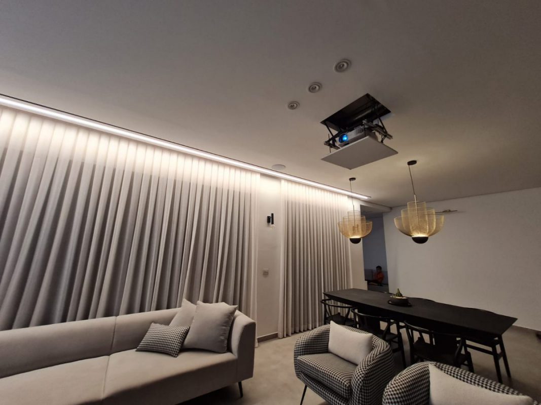 התקנת מערכת קולנוע ביתית עם מעלית למקרן בבית פרטי